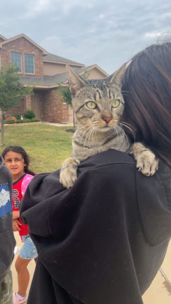 Date found: 10/24/2025 Location found: Fate Tx, wood creekSex: MaleDescription: Very nice and sweet Male tabby, very sweet with kids it seems and seems domestic. Green eyes and no visible…