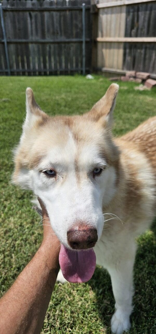 Date found: 06/25/2025 Location found: Meadowcreek Estates Sex: Female Description: White/Blonde Hisky with grey eyes.Black and grey collar. Very sweet temperment Found By: James Hudson (214) 771-2209 Click for Email